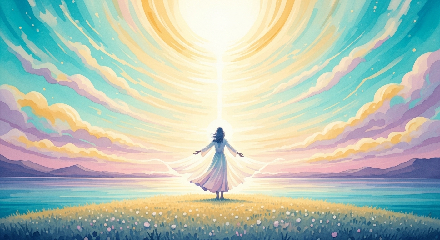 目を開けると、力強い朝日が無限な何かであることを知っており、「この温かい光は愛そのものなんだ」 と感じました。