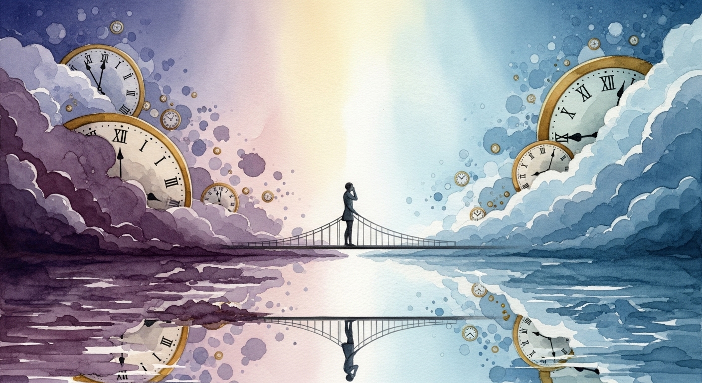エックハルト・トールによれば、苦しみの根本的な原因は、私たちが「時間」という思考の幻想に囚われていることにあります。